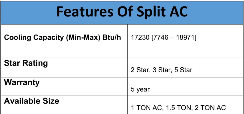 A Split Air Conditioner (AC) is made up of two major parts – the indoor unit and the outdoor unit. The indoor unit is fixed inside the room and works to circulate cool or warm air, while the outdoor unit, placed outside, houses the compressor. This separation ensures better cooling efficiency and quieter operation compared to traditional window ACs. Split ACs are a perfect choice for medium to large rooms, providing enhanced temperature control along with a sleek and modern look for interiors.